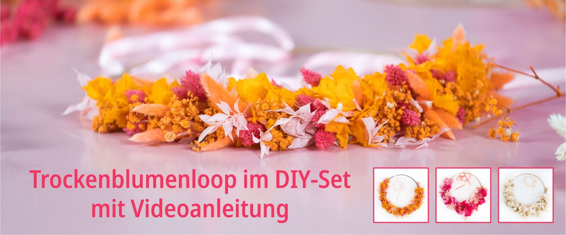 Unsere Sets bieten dir die perfekte Grundlage: sorgfältig zusammengestellte Trockenblumen, harmonische Farbkombinationen und eine einfache Schritt-für-Schritt-Anleitung per Video. So wird jeder Loop zu einem kleinen Kunstwerk – ganz ohne Vorkenntnisse.